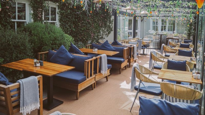 Outdoor Covered & Heated Terrace at the Meadowlands Hotel!